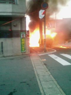 被害は車が全焼、うちの台所の窓ガラスにひびが入りました(´・ω・`)